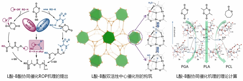 近日,开元集团KY开元集团官网陈群研究员课题组在新型医用可降解聚酯材料及产业化关键技术研发过程中,创新性提出了布朗斯特酸和路易斯酸协同催化环脂开环聚合机理,为无毒、高效聚合催化剂的设计开发奠定了基础。该工作以金属-有机自组装为策略,构筑了生物相容性金属-有机框架材料,实现了高效催化环脂本体开环聚合。通过理论计算并结合原位漫反射傅立叶变换红外光谱和基质辅助激光解吸电离飞行时间质谱等多种验证手段,提出并验证了基于布朗斯特酸和路易斯酸协同催化的环脂开环聚合机理,为开环聚合反应提供了新思路。研发出的新催化剂不仅符合无毒、高稳定和受控开环聚合的要求,形成的聚酯端羟基便于改性,具有重要的应用价值,成果发表在化学顶级期刊《Chemical Science》最新一期上,并获中国发明专利授权(专利号ZL201510483737.8)。