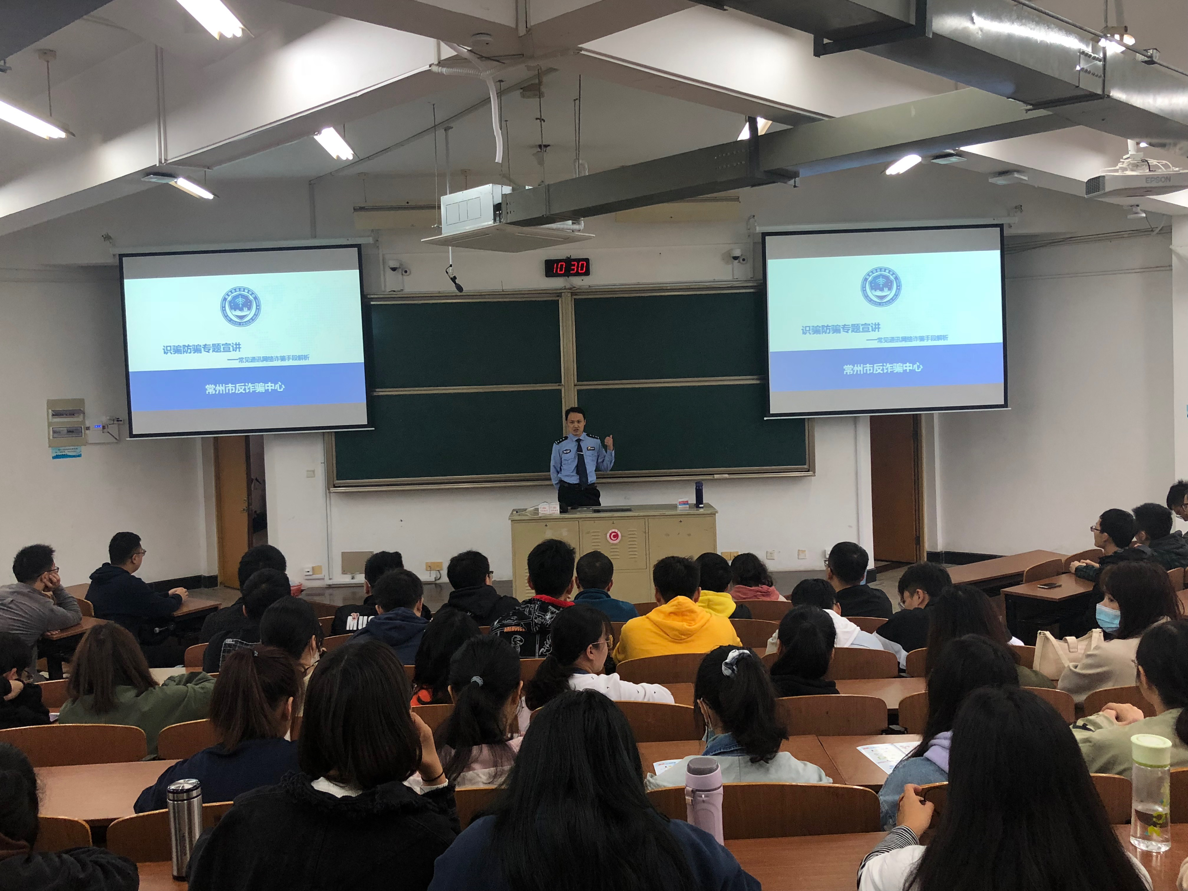 2020年10月16日,开元集团组织20级新生开展安全教育,院副院长周永生、安全员周永南为全体新生进行实验室安全教育,常州市防诈骗中心警官张之林、秦瑶,科教城派出所民警戴立鋆、何之源为全体新手进行防诈骗安全教育。
