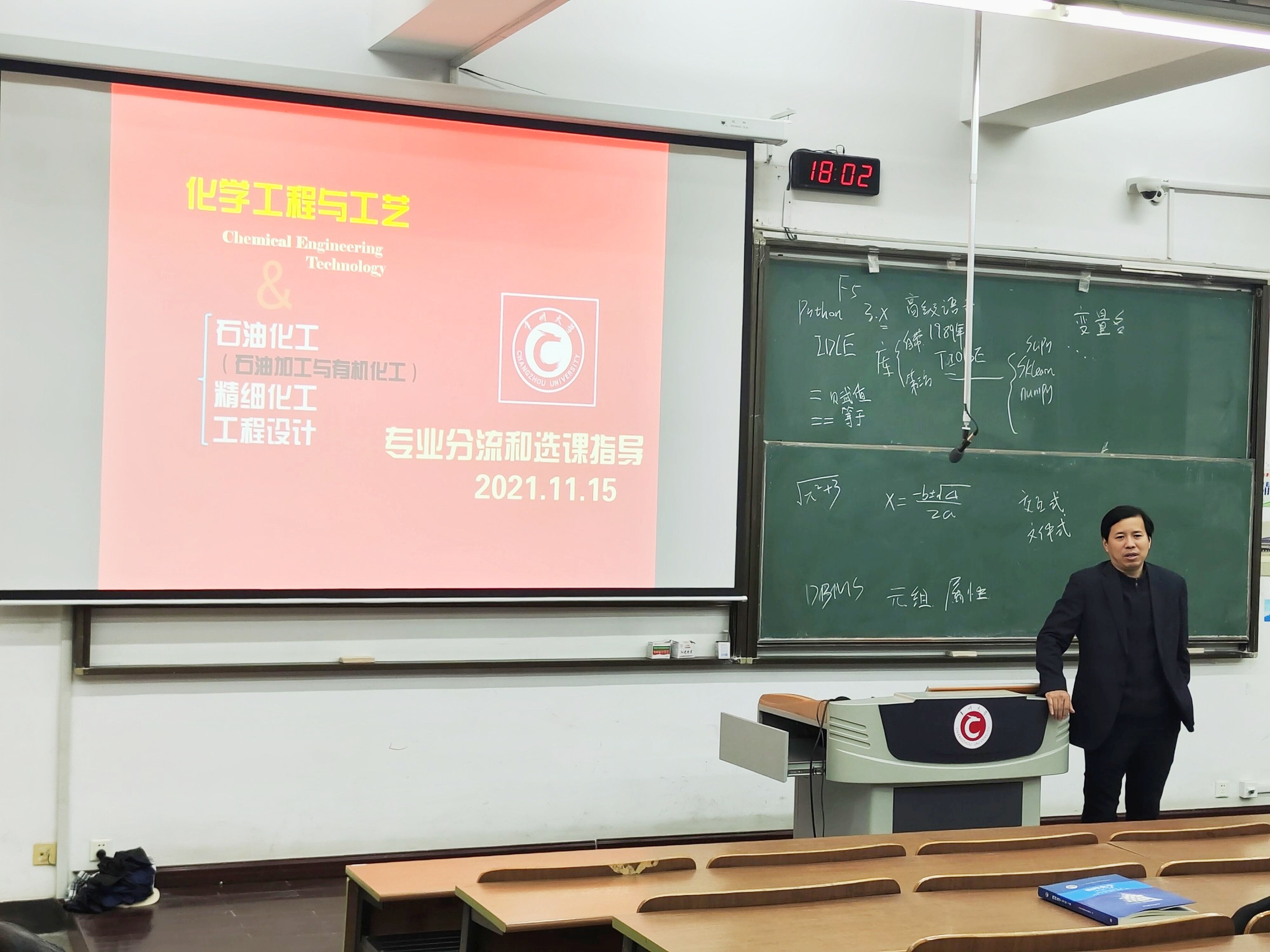 会上,马江权就化工专业的选课、专业分流、考研、就业及相关专业竞赛活动等多方面与同学们进行了交流指导。他详细讲解专业学习的方法及专业分流后的注意事项,介绍往年每届学生的分流情况,要求大家加强专业学习,及早做好就业与考研准备。