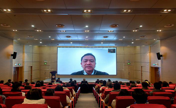 江苏理工学院张春勇副教授作为教师代表讲话,希望同学们能够进一步保持积极的学习态度,在未来的科研上勇攀高峰,取得更出色的成果。