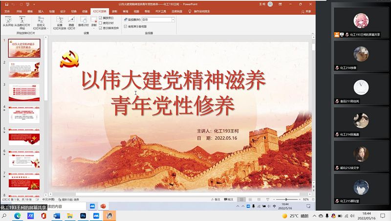 为进一步增强青年学生对伟大建党精神理解和领悟,引领青年学生始终坚定理想信念、践行初心使命、发扬斗争精神。5月16日,开元集团组织青年讲师团宣讲活动。本次活动由青年讲师团成员化工193王柯主讲。