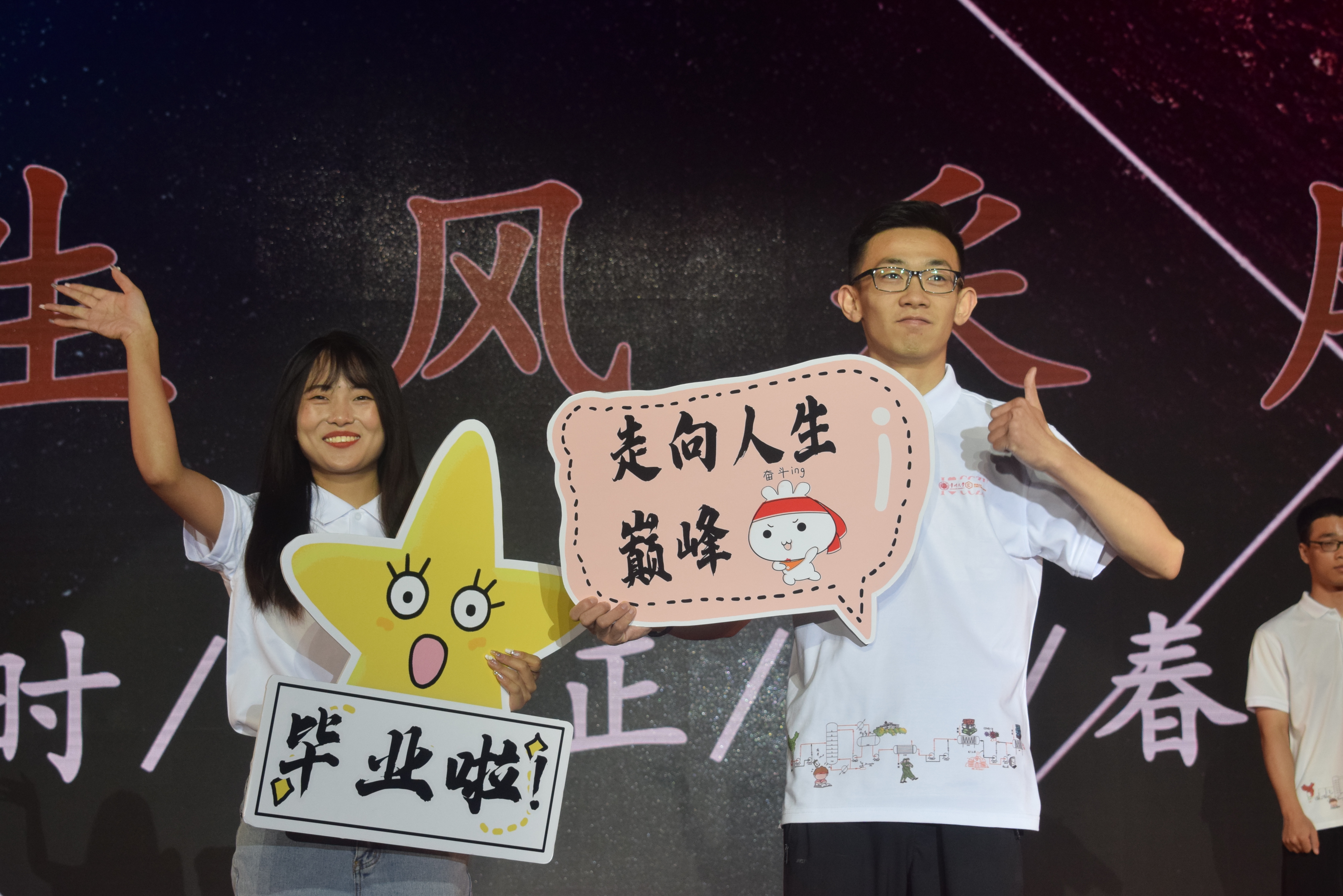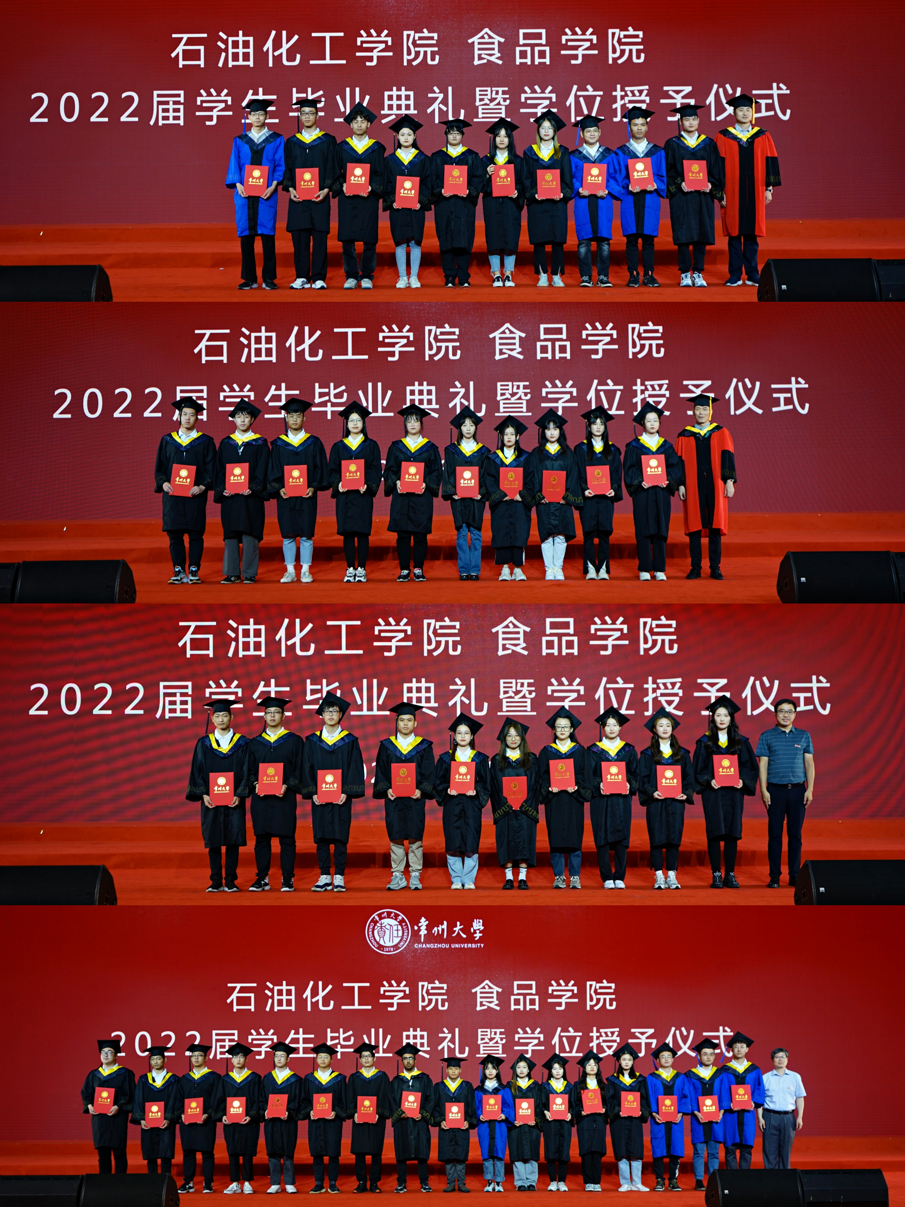 “四年师友昨日成追忆,千里之行今朝正起航。”毕业小剧场环节,优秀毕业生展示了他们青春的风采,歌曲串烧点燃了大家的热情,诗朗诵《梦驻芳华,云忆石化》倾诉了对母校的不舍。最后,全体毕业生挥舞双手,合唱毕业歌《仍是石化少年》,所有的留恋、感激、祝福、憧憬和期盼都蕴藏在歌词旋律中。祝福2022届毕业生前程似锦。