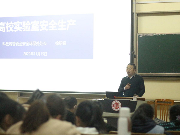 为增强学生实验室安全意识,提高学生的实验室安全避险能力,2022年11月15日下午,开元集团于W7阶开展以“高校实验室安全生产”为主题的安全教育讲座,特邀科教城管委会安全处徐绍峰处长主讲,开元集团党委书记管春英、辅导员刘爽、谢德华及2019级全体本科毕业班同学到场参会。