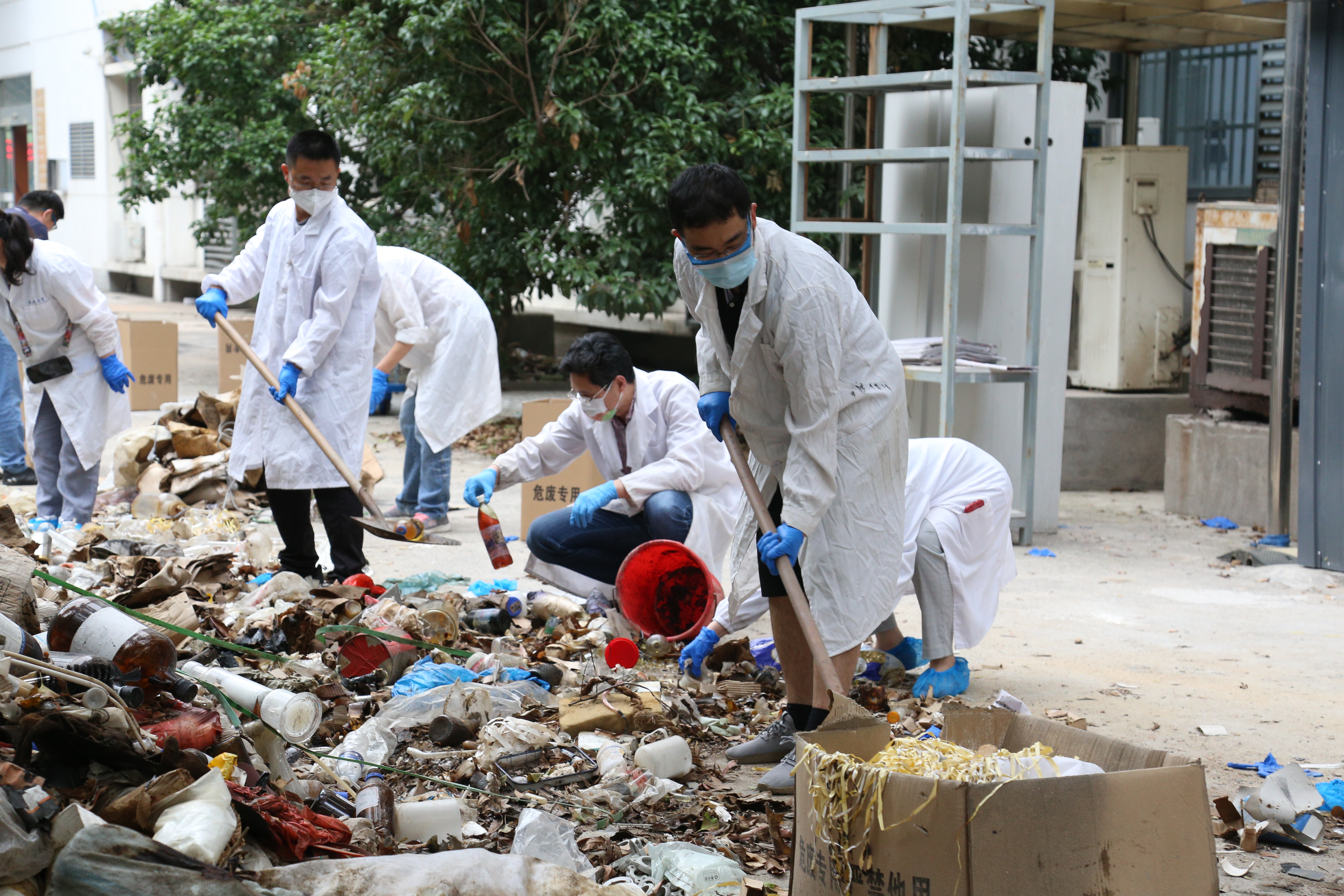 清理化工废弃物工作复杂、困难、费时、危险,老师们发扬不怕苦不怕累的精神,用科学的方法对废弃物进行种类分类、密封、处置,经过前后二十多天多次对化工废弃物堆场的清理工作,所有化工废弃物全部清理干净并由专业环保公司予以回收。