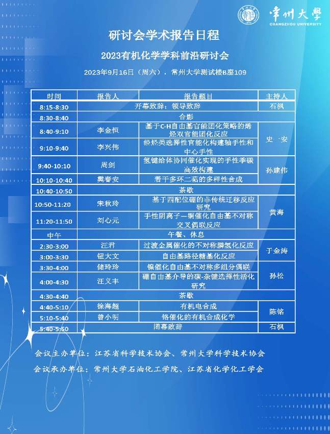 【学术会议】2023有机化学学科前沿研讨会9月16日