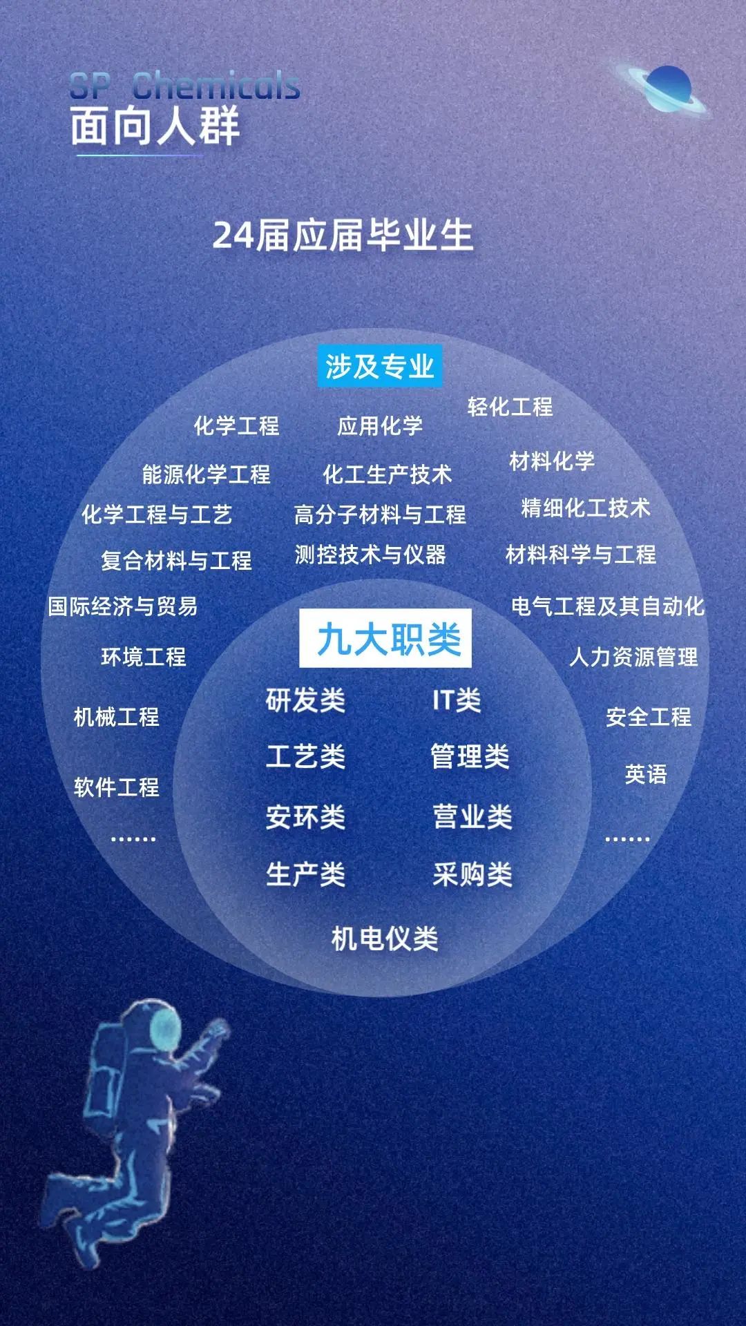 研发技术员、工艺工程师(储备)、化工作业员、仪表保养作业员、机械设备保养作业员、HSE技术员、IT技术员、行政专员、采购员、营业员、外贸员等