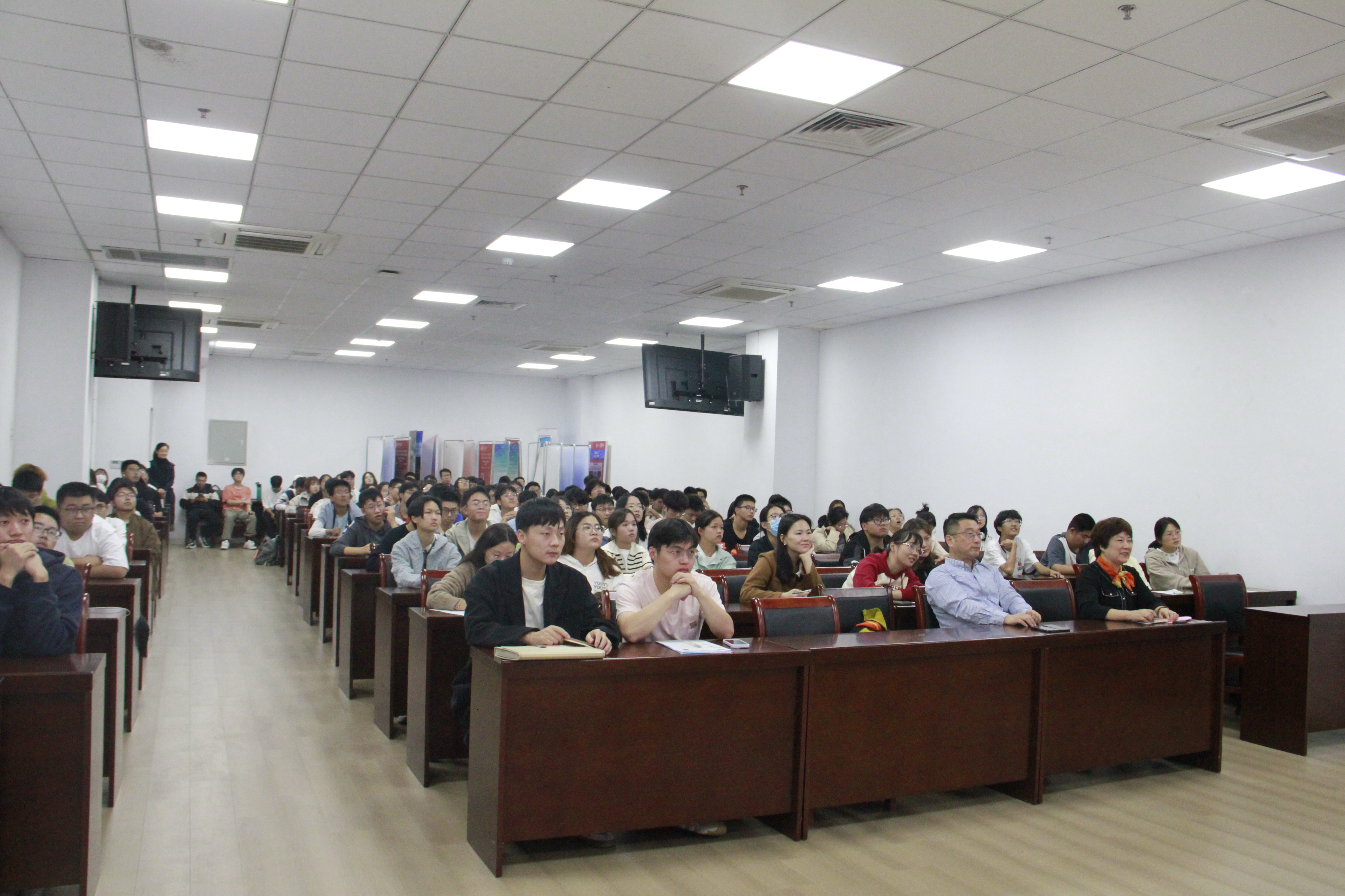 活动伊始,郭少杰为大家介绍了万华化学集团及其人才培养模式,并根据从业经历,分享了就业招聘相关的经验和注意事项,希望同学们尽早进行职业规划。接着,张宁对伊士曼公司作了简要介绍,并根据自身工作经历对化工行业发展做深入剖析。他提出,中国化工行业正在快速发展,未来前景将一片大好,并鼓励同学们积极投身于化工行业。