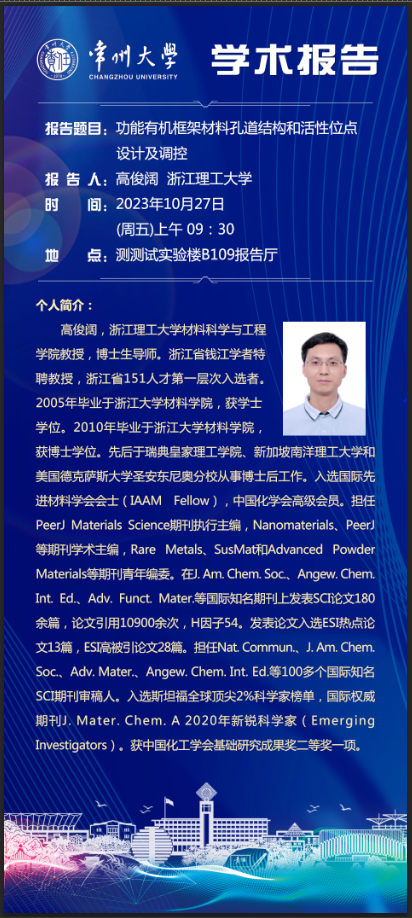 【学术报告】10月27日学术报告——高俊阔教授,浙江理工大学