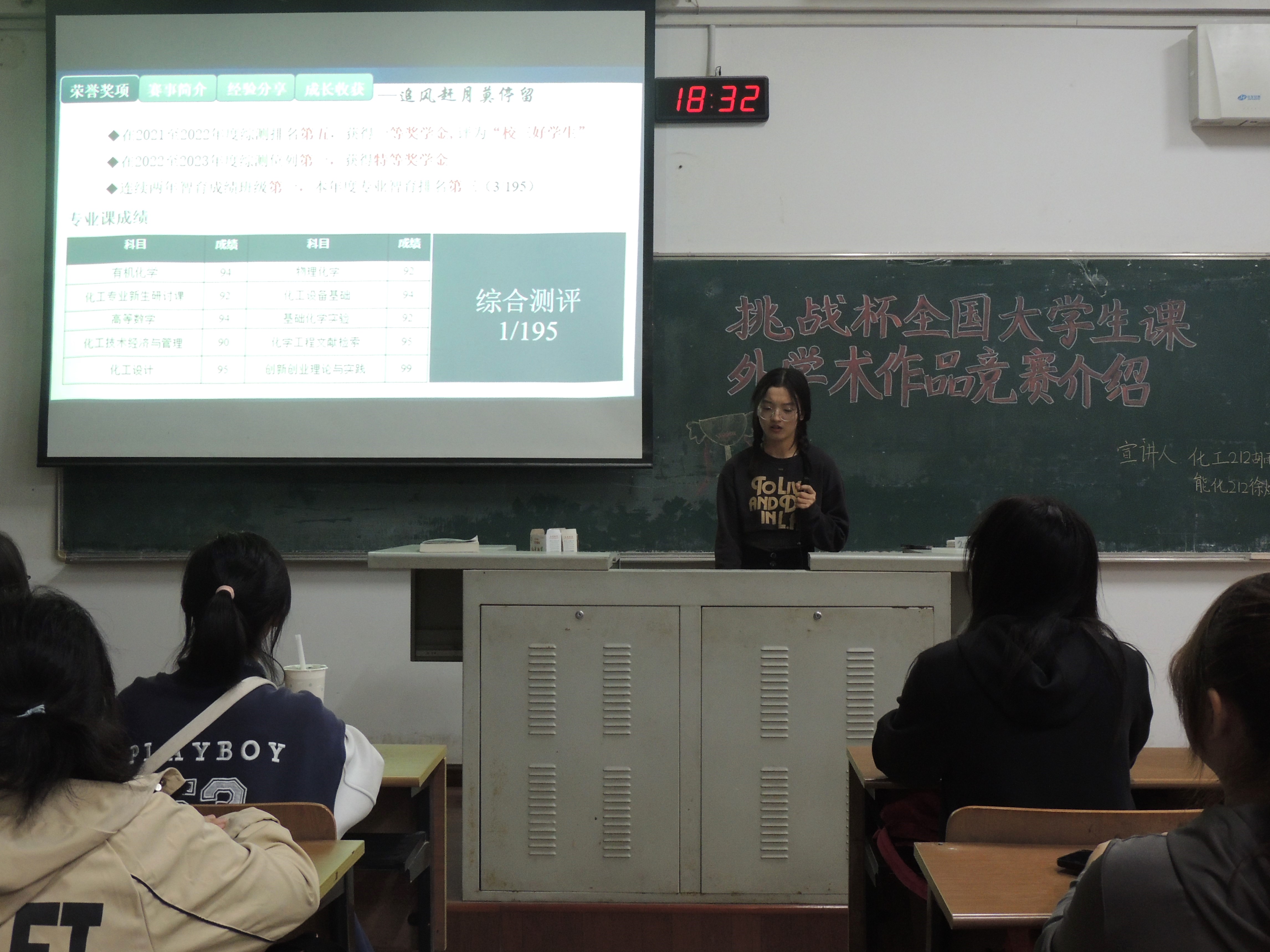 为鼓励开元集团学生积极参与创新创业竞赛,加强创新本领、提高学术水平和能力,开元集团于近日在W1210举办“石化青年说”系列讲座——“挑战杯”获奖者经验分享。本次讲座由开元集团“挑战杯”获奖者化工212班胡雨萌、能化212班徐烨主讲,各年级学生代表参加。
