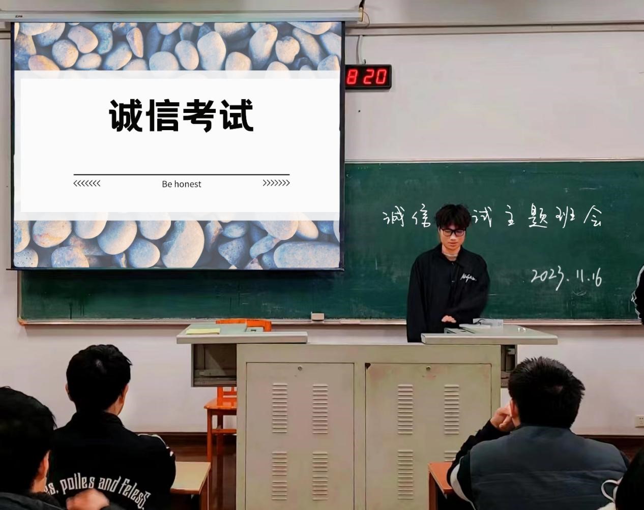 班会中,辅导员和班主任带领学生学习学生手册中关于诚信考试的相关内容,指出考场作弊的发生很大部分源于功利心理、侥幸心理等不正确考试心理的影响,为学生敲响警钟。同时强调英语四六级和期末考试的重要性,呼吁学生充分认识开展诚信教育的重要性和必要性,培养自觉遵守考试纪律、抵制违法违纪行为的良好习惯,自觉维护各类考试的权威性和公信力。