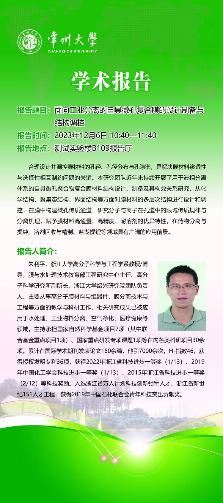 【学术报告】12月6日学术报告——朱利平教授,浙江大学
