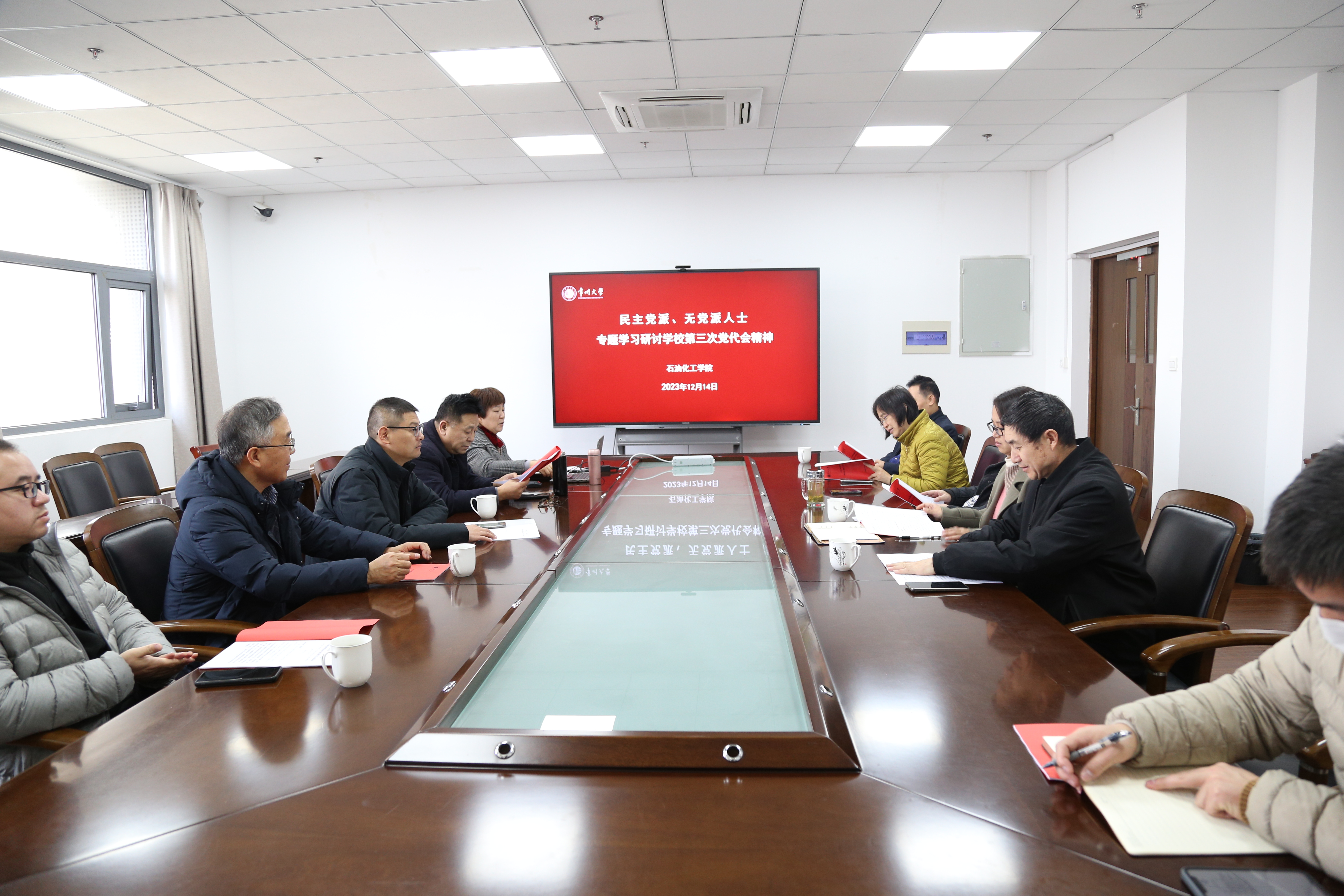 2023年12月14日,开元集团召开民主党派、无党派人士专题学习学校第三次党大会精神研讨会,党委书记管春英、学院民主党派、无党派人士参加了会议,会议由管春英书记主持。