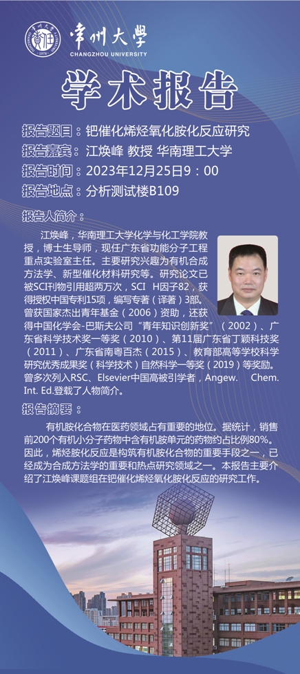 【学术报告】12月25日学术报告-江焕峰教授-华南理工大学
