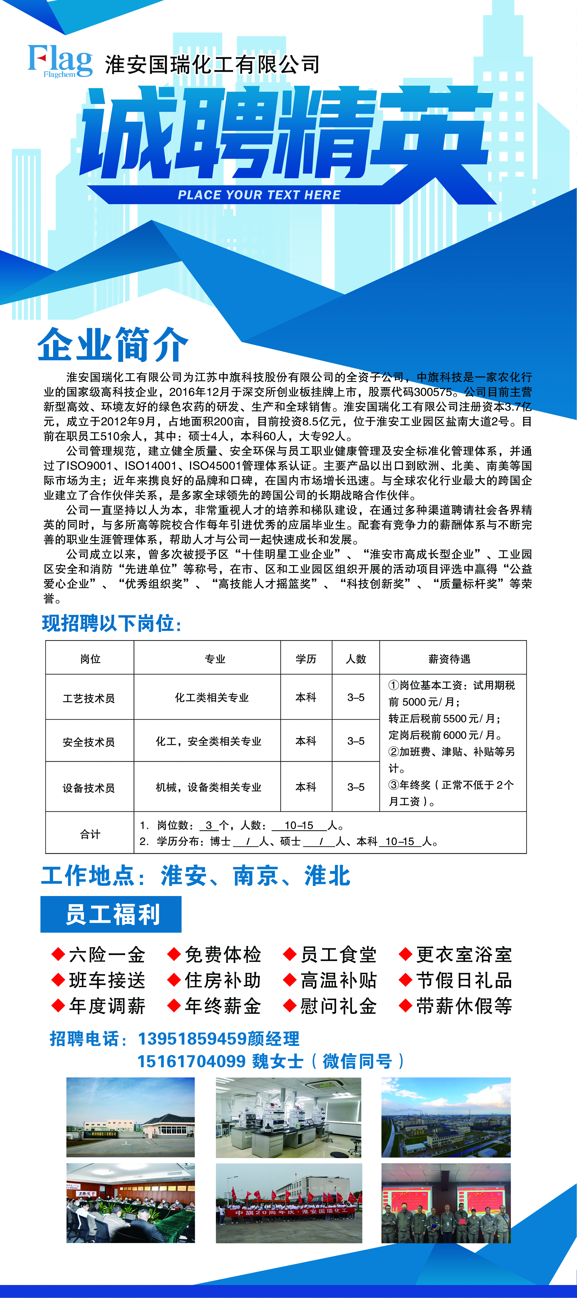 【就业】就业信息20047: 淮安国瑞化工有限公司