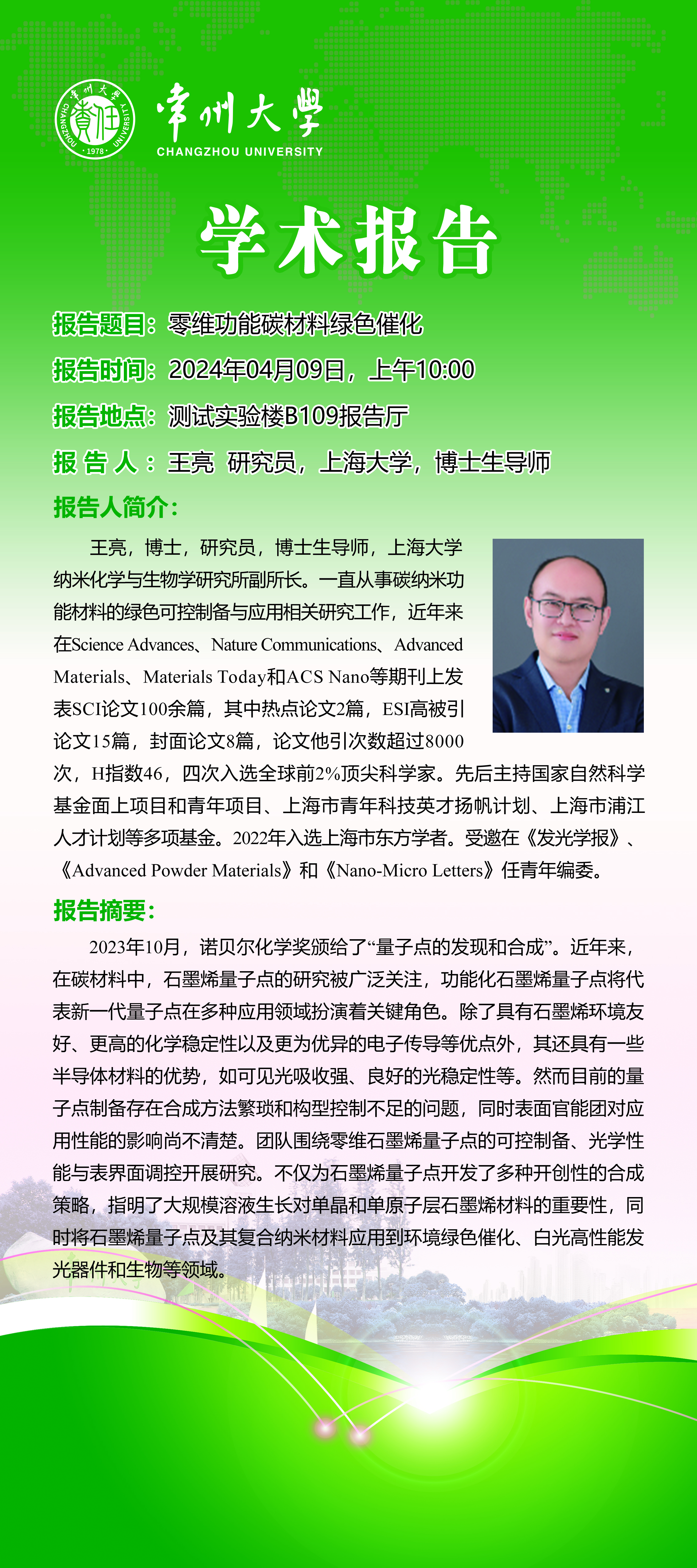 【学术报告】4月9日学术报告-王亮研究员-上海大学