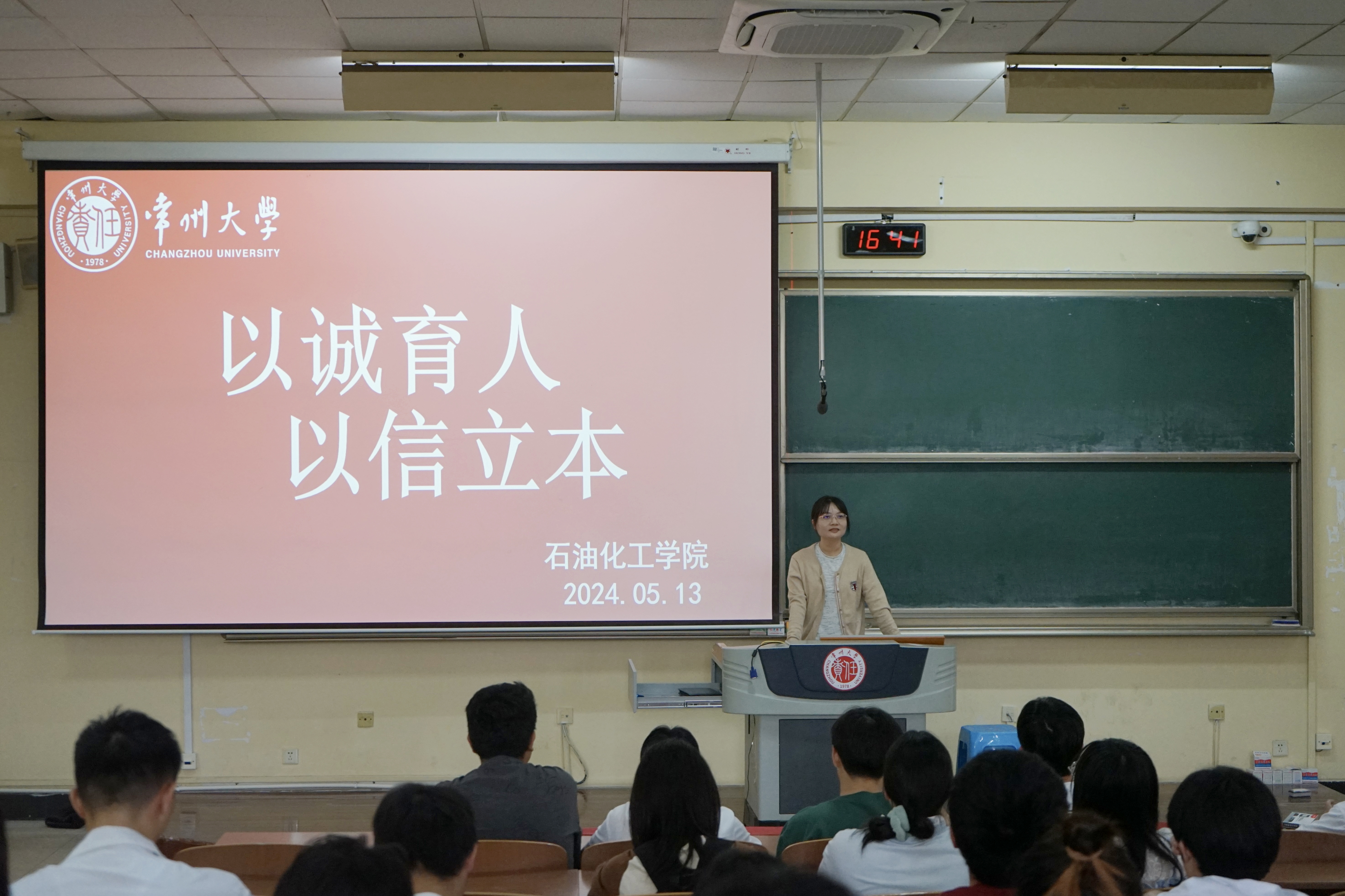 唐弋钦从学习诚信、贷款和受助诚信、经济诚信、上网诚信和生活诚信五个方面向同学们阐述了诚信的重要性,通过列举真实案例强调诚信不仅是中华民族的传统美德,更是现代社会不可或缺的道德基石。号召学生在“一诺千金、诚信做人”的横幅和承诺书上签下自己的名字,进一步提升学生诚信意识和社会责任感。