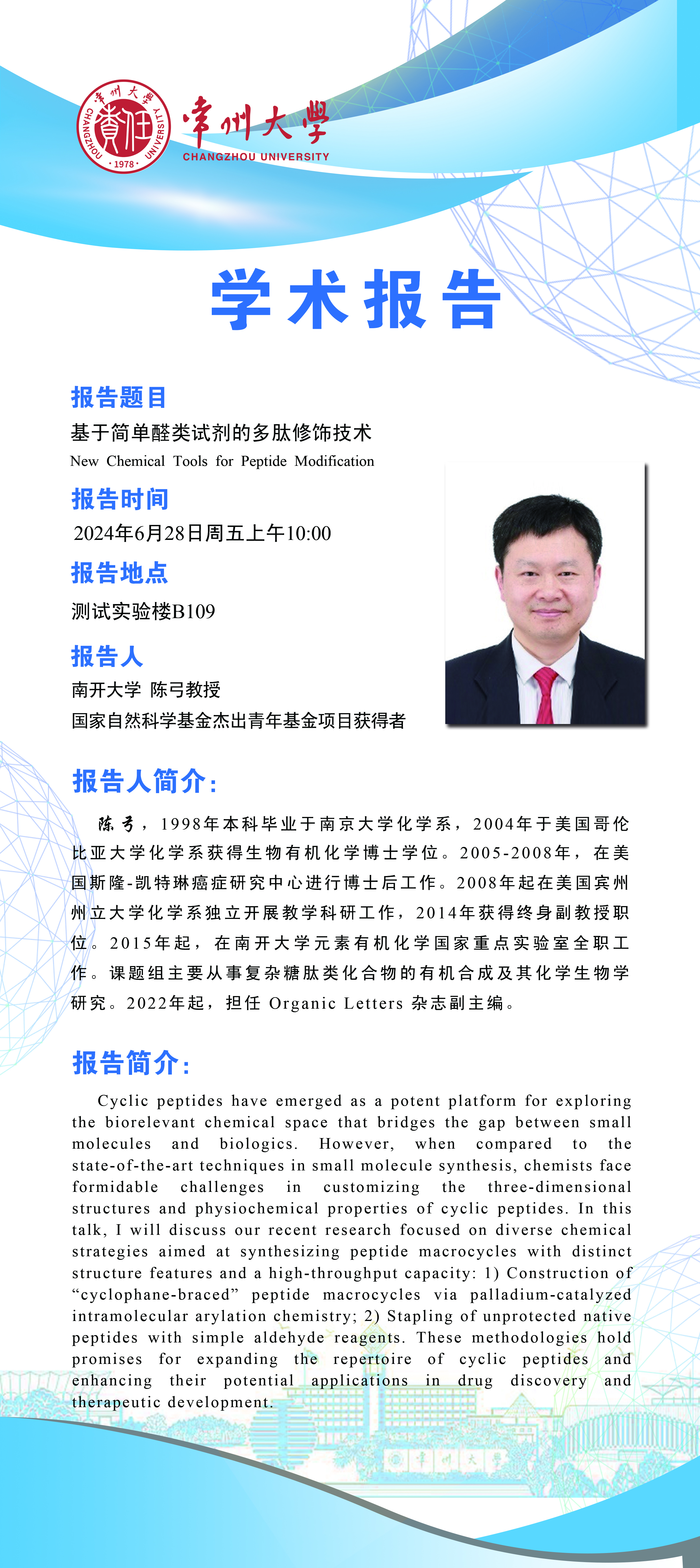 【学术报告】6月28日学术报告—陈弓教授 南开大学