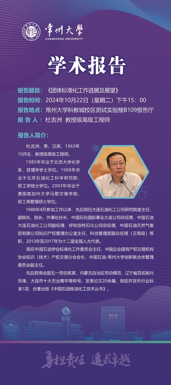 【学术报告】10月22日学术报告—杜吉洲教授级高级工程师