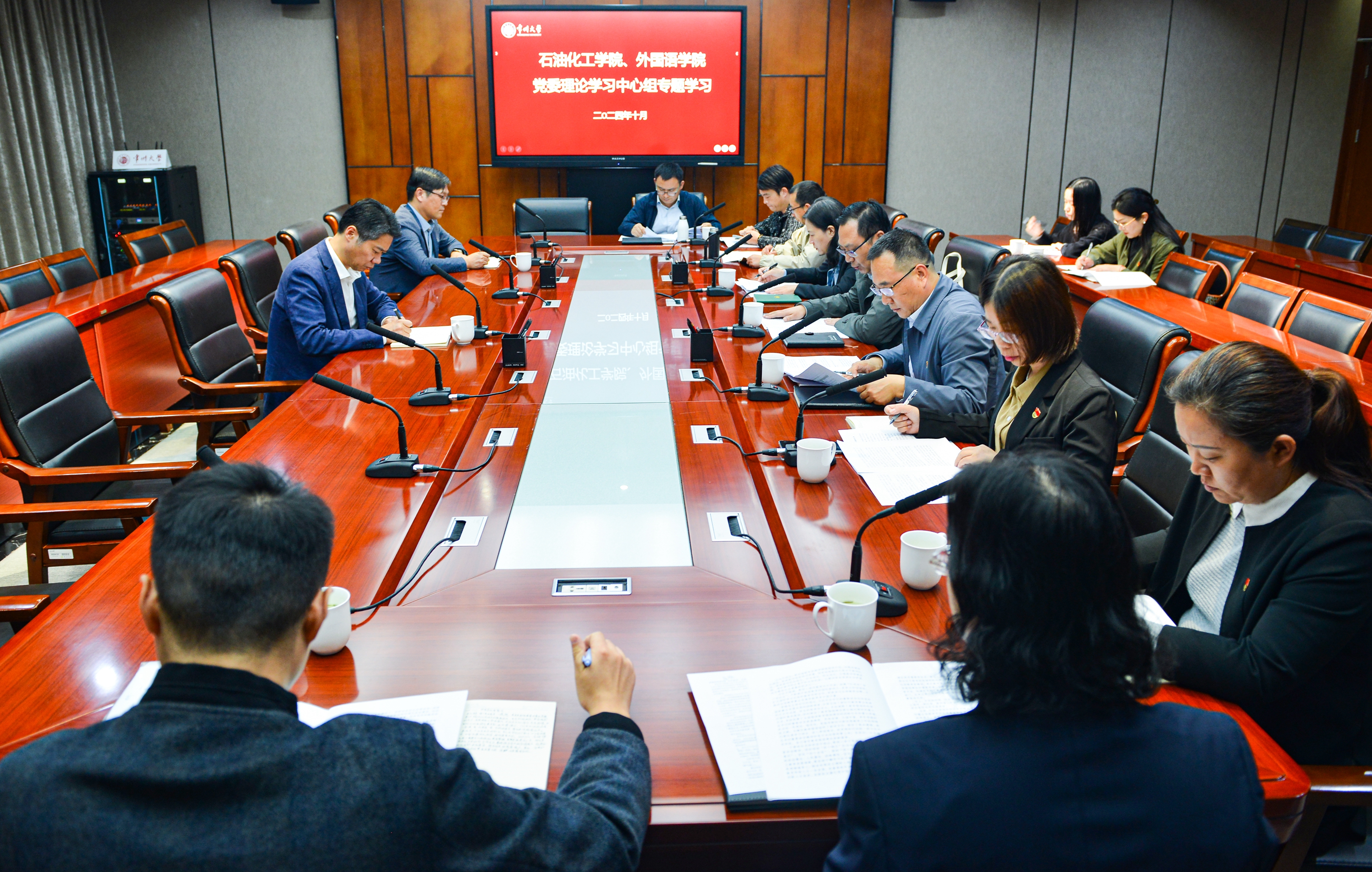 外国语学院党委书记薛勇领学了习近平总书记在全国教育大会上的重要讲话《紧紧围绕立德树人根本任务 朝着建成教育强国战略目标扎实迈进》;两院党委理论学习中心组成员结合理论学习内容,联系工作实际,交流学习感悟。