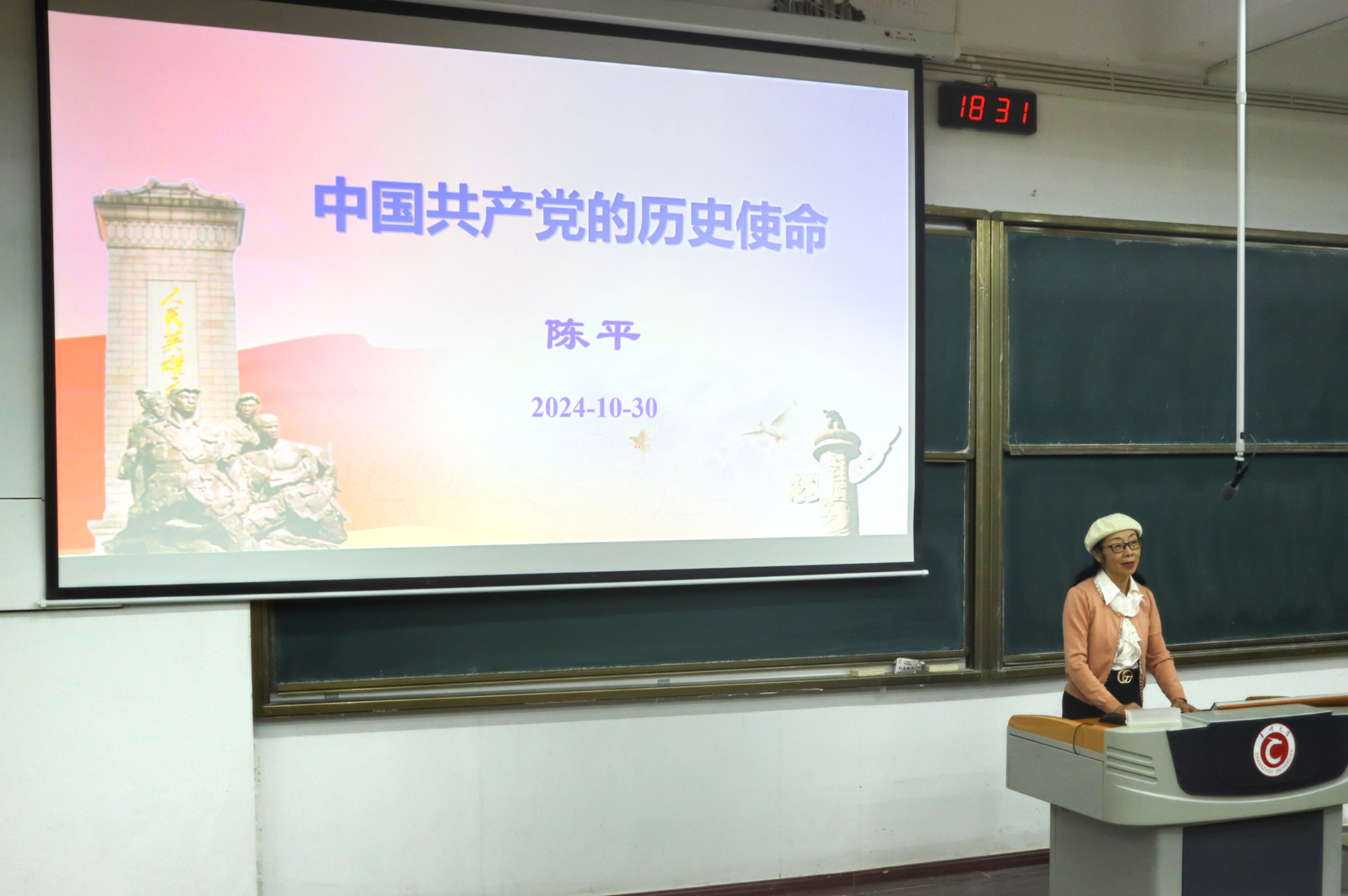 陈平以《中国共产党的历史使命》为主题为学员们授课,从中国共产党诞生的历史背景、近代中国社会的现实要求和中国人的家国情怀等方面阐释了中国共产党承担历史使命的必然性;从中国共产党历史使命的特征、中国共产党百年奋斗历程、新时代中国共产党的历史使命、做党的使命坚定担当者四个维度讲述了中国共产党实现历史使命的艰巨性。最后,陈平寄语学员们,要努力奋斗,争取早日加入中国共产党,在党的领导下,承担历史使命,为人民幸福和国家复兴作出贡献。