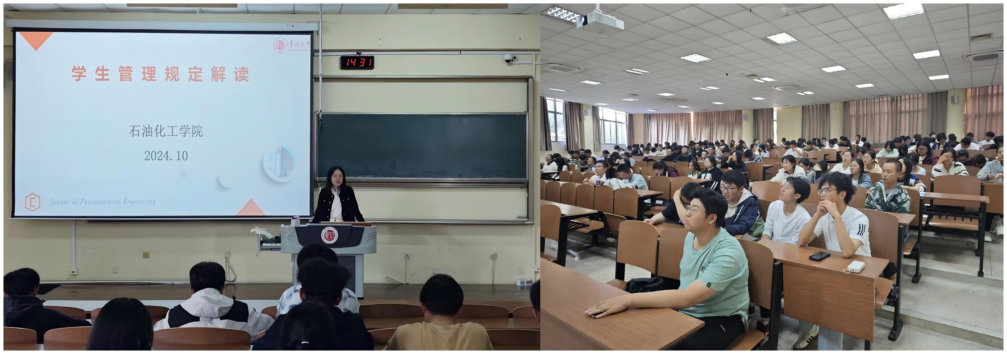 为进一步做好学生教育和管理工作,引导并帮助2024级新生转变角色定位、明确校纪校规、合理规划学习与生活,开元集团于2024年10月25日在W3、W4阶教开展学生管理规章制度解读讲座。本次活动由学工办主任孙潘老师主讲,开元集团2024级全体新生参加。