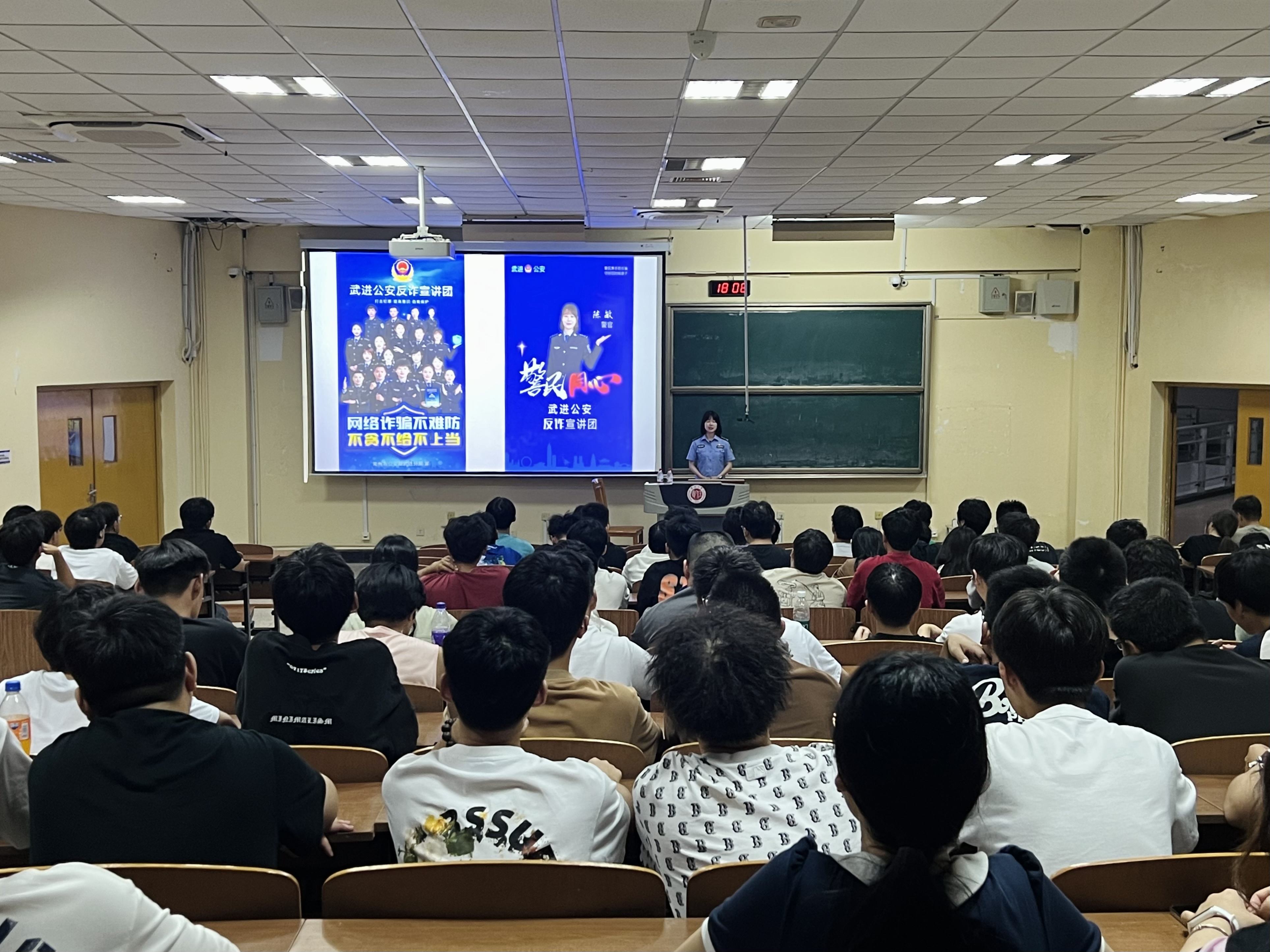 讲座中,宣讲团民警首先对常见电信网络诈骗类型进行深入讲解,揭示大学生群体中容易被骗的几种案件类型,如兼职刷单、游戏交易、虚假购物以及冒充熟人等,并以真实案例向同学们介绍各种典型诈骗案件的特点,普及应对各类诈骗的方法和防范措施,希望同学们安装国家反诈中心APP以保护自身财产安全。在讲座中,宣讲团民警告诫同学们要时刻保持警惕,不要轻易透露个人信息,轻易转账汇款。