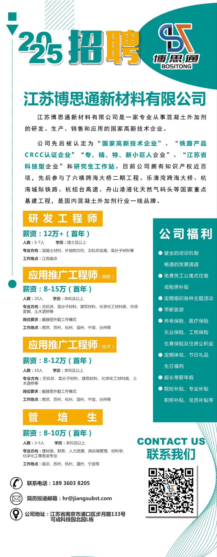【就业】就业信息20076:江苏博思通新材料有限公司