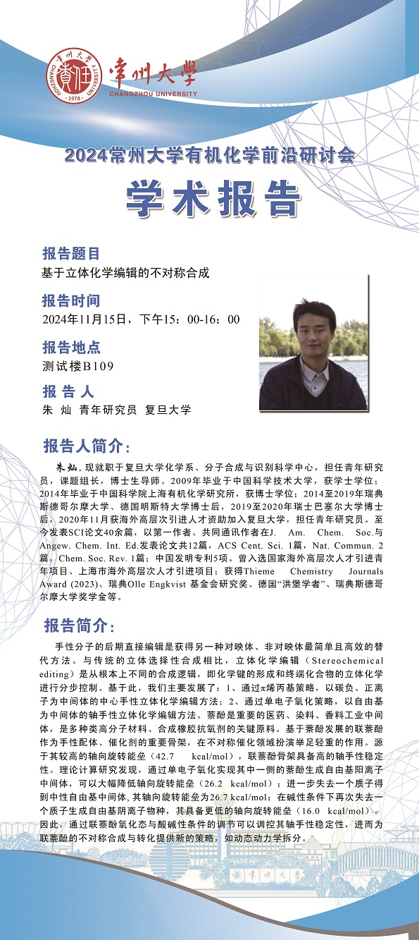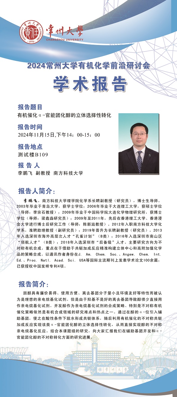 【学术报告】11月15日学术报告—李鹏飞副教授 南方科技大学 ;朱灿青年研究员、钱辉副教授 复旦大学