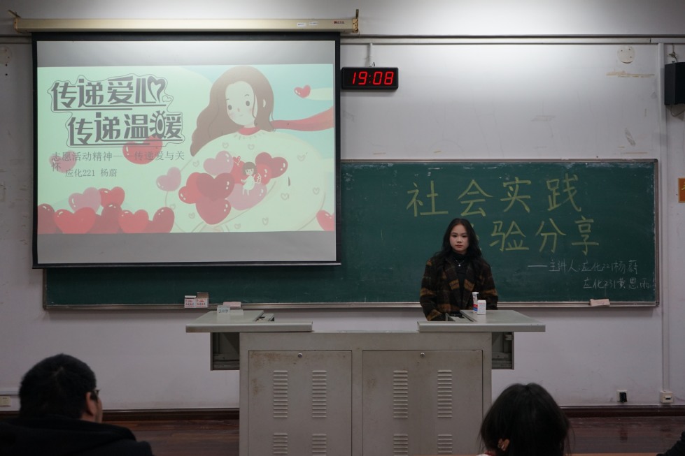 为了增强学生对社会实践的兴趣,培养学生无私奉献、关爱他人的精神,开元集团于11月19日在W1209开展“石化青年说”系列讲座第三讲——社会实践经验分享。本次讲座由应化221杨蔚、应化231黄思雨主讲,开元集团学生代表参加。
