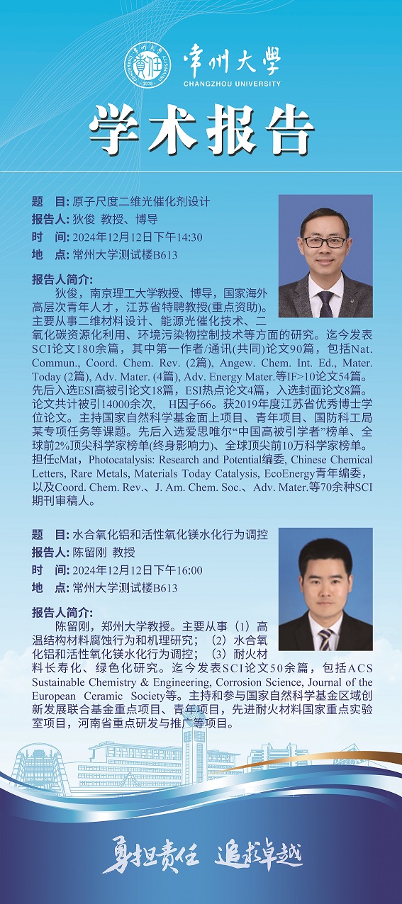 【学术报告】12月12日学术报告—狄俊教授 南京理工大学 陈留刚教授 郑州大学