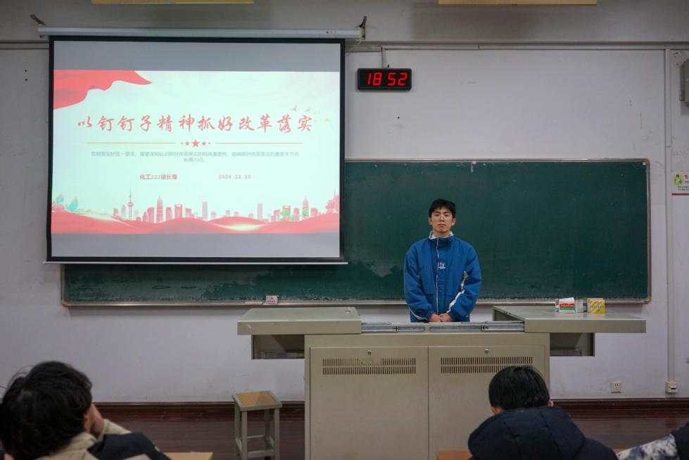为积极响应党的二十届三中全会的号召,以钉钉子精神全面推动各项改革举措的落实,开元集团于12月10日在W1205教室开展了“青年讲师团”系列讲座第五讲——以钉钉子精神抓好改革落实。本次讲座由学生第一党支部化工222徐长海主讲,开元集团学生代表参加。