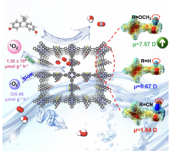 ,使其在双酚A(BPA)降解方面展现出革命性的高效性,分别在短短2分钟便能将10 ppm及20分钟内将100 ppm的BPA彻底降解为无害物质。此外,光催化过氧化氢(H2O2)的生成效率在无任何添加剂下同样达到令人瞩目的987 μmol g-1 h-1。该研究以题为“Selective Oxygen Activation by Integrating Dual Photosensitizers in Conjugated Porous Polymers and Microenvironments Manipulation for High-performance Water Purification and H2O2 Production”的论文发表在国际顶级期刊《Advanced Functional Materials》上(Adv. Funct. Mater. 2024, 2419010)。