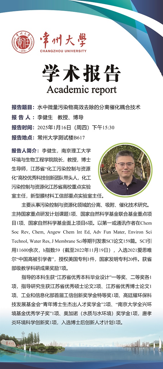 【学术报告】1月16日学术报告—李健生教授 南京理工大学