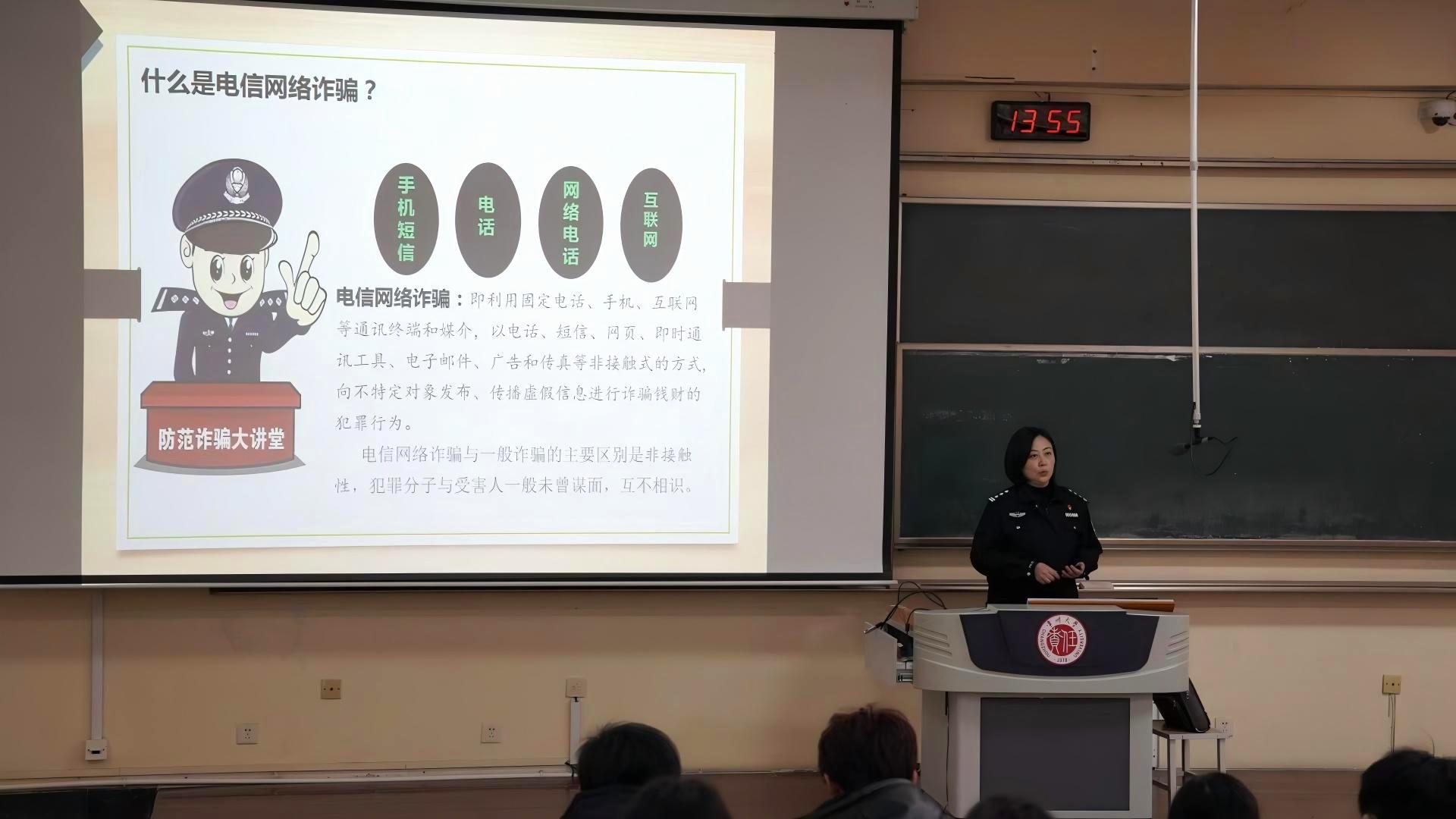 为进一步提高开元集团学生对各类诈骗的鉴别能力和自我防范意识,石化学院分工会联合科教城派出所开展防范电信诈骗专题讲座,活动由科教城派出所吴明宇警官主讲。