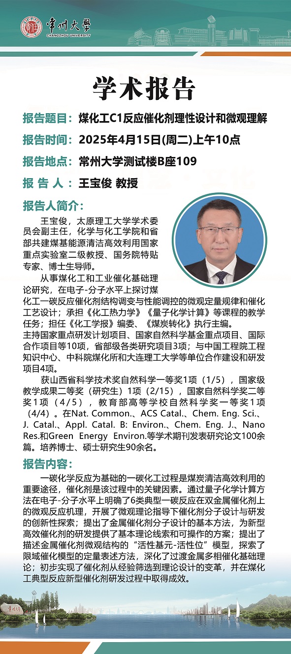 【学术报告】4月15日学术报告—王宝俊教授 太原理工大学