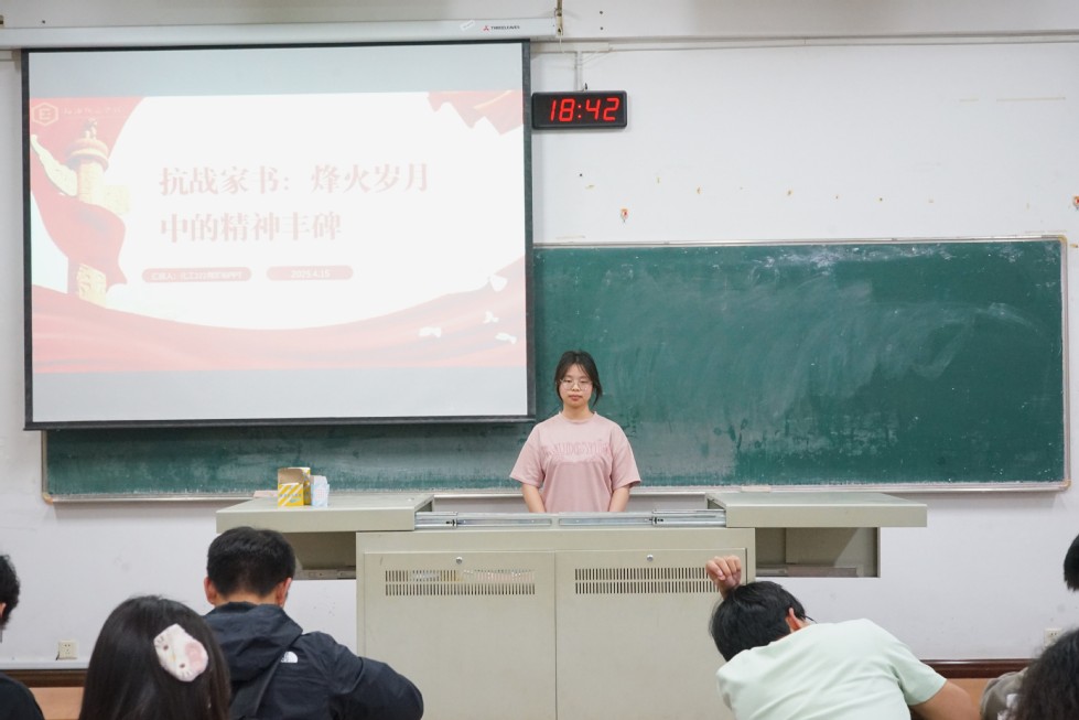 在讲座中,陈雨欣通过历史事件和人物事迹,带领同学们感受先辈奋斗精神。魏家瑜聚焦抗战家书,以左权、赵一曼等英雄家书为例,诠释烽火岁月中的家国情怀。讲座还结合抗疫战疫家书,展现民族精神的时代传承。
