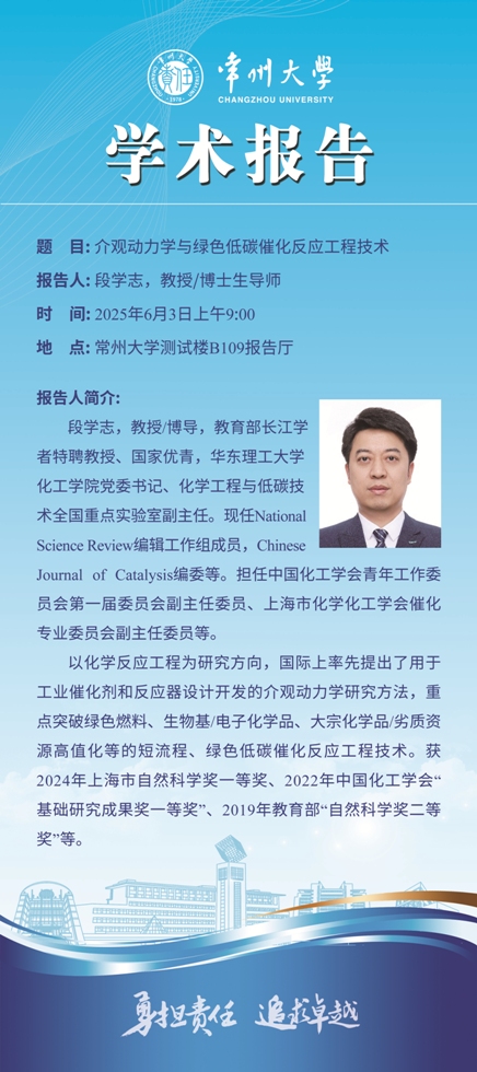 【学术报告】6月3日学术报告—段学志教授 华东理工大学