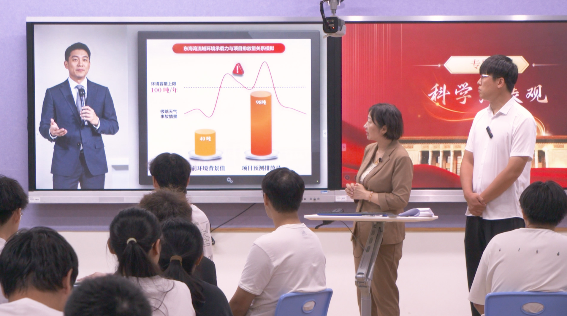 课程伊始,朱霁老师主持学生分角色扮演听证会,着重阐述科学发展观在化工领域里的关键作用,课程围绕一个高度仿真的“乙烯扩建项目模拟听证会”展开,石剑老师以“专业顾问”身份,从化工生产的特性出发,深入阐释了“社会许可”这一现代工程领域的核心概念,引导学生理解:一个项目的成功,不仅取决于技术可行和经济合理,更关键在于能否获得民众的理解和信任。“这不仅是一道技术题,更是一道伦理题和社会题,”石剑在点评中强调,“这正是科学发展观‘以人为本’核心立场在我们化工行业最直接的体现。