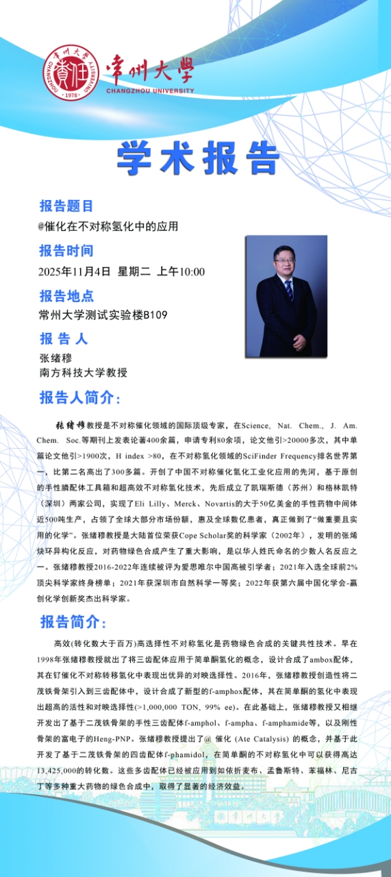 【学术报告】11月4日自然与合成有机化学研究院学术报告——张绪穆教授 南方科技大学