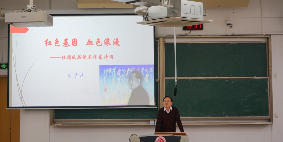 胡学琦以毛泽东诗词为线索,从毛泽东与诗词、革命历程、精神心路与美学特征四方面展开,生动解读诗词背后的党史与革命情怀;他带领同学们回顾从“谁主沉浮”的豪情到“星火燎原”的胆识,展现了毛泽东诗词作为“诗化党史”的深刻内涵,并剖析其中蕴含的崇高精神与人文哲思。讲座尾声,胡学琦引用“数风流人物,还看今朝”,鼓励同学们传承红色精神,勇担时代使命。
