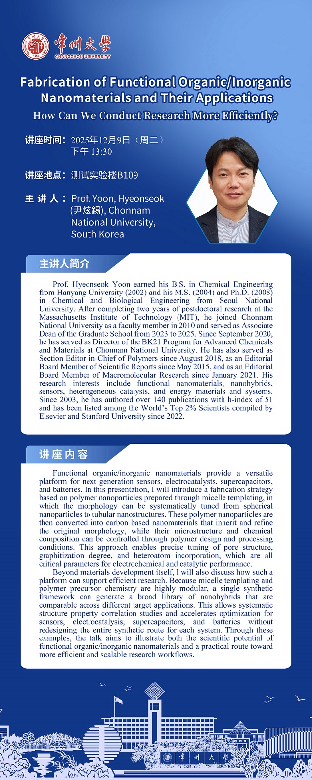 【学术报告】12月9日学术报告——Prof. Yoon, Hyeonseok (尹炫錫) Chonnam National University