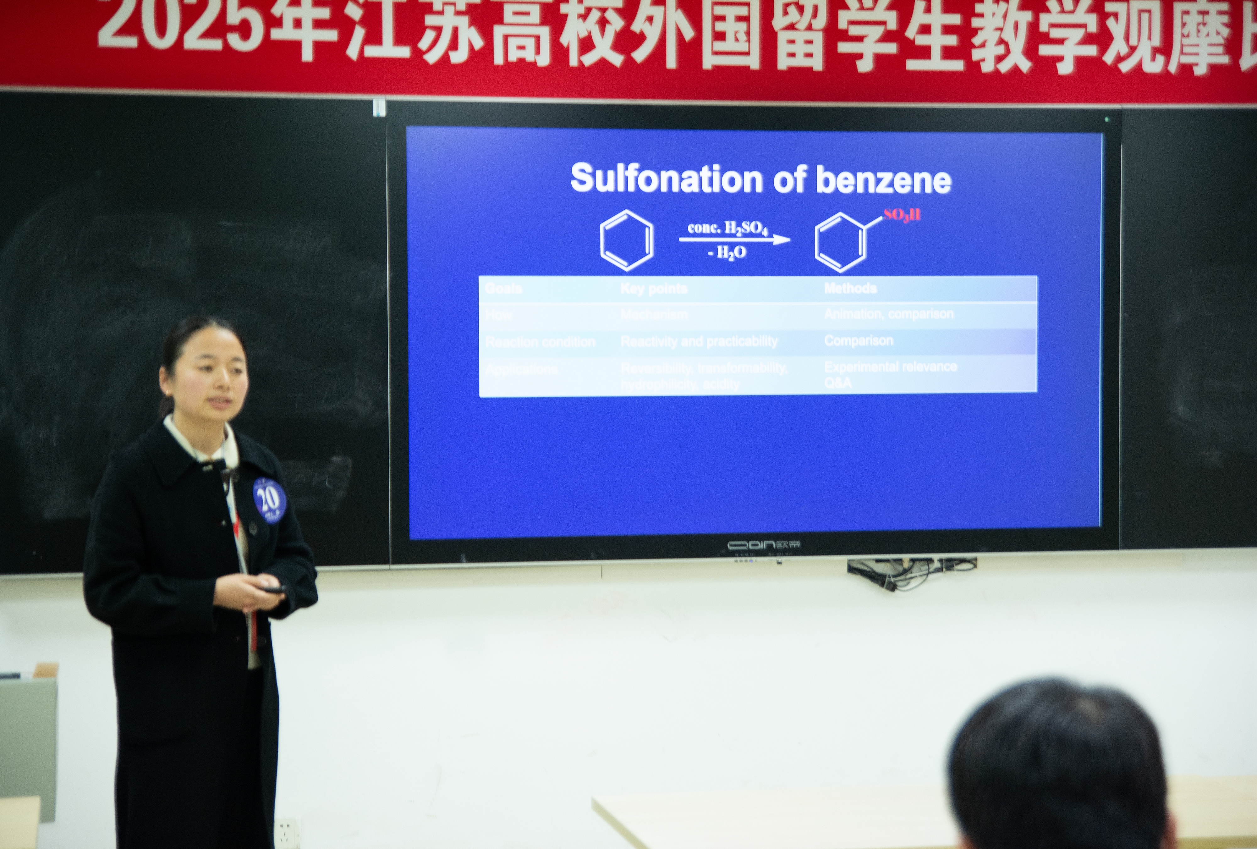 滕巧巧老师此次参赛的课程为《有机化学》,该课程面向外国留学生,是化学化工及相关专业的重要基础课。在比赛中,滕老师凭借扎实的专业功底、清晰的课程设计、生动的教学方法以及良好的跨文化沟通能力,成功展示了KY开元集团官网在留学生教育教学方面的专业水准与创新实践,赢得了评审专家的认可。