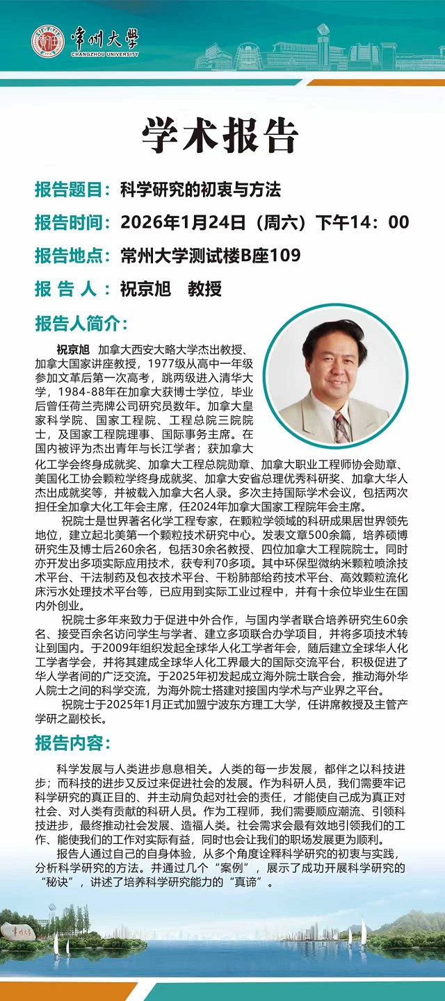 【学术报告】1月24日学术报告——祝京旭教授 宁波东方理工大学