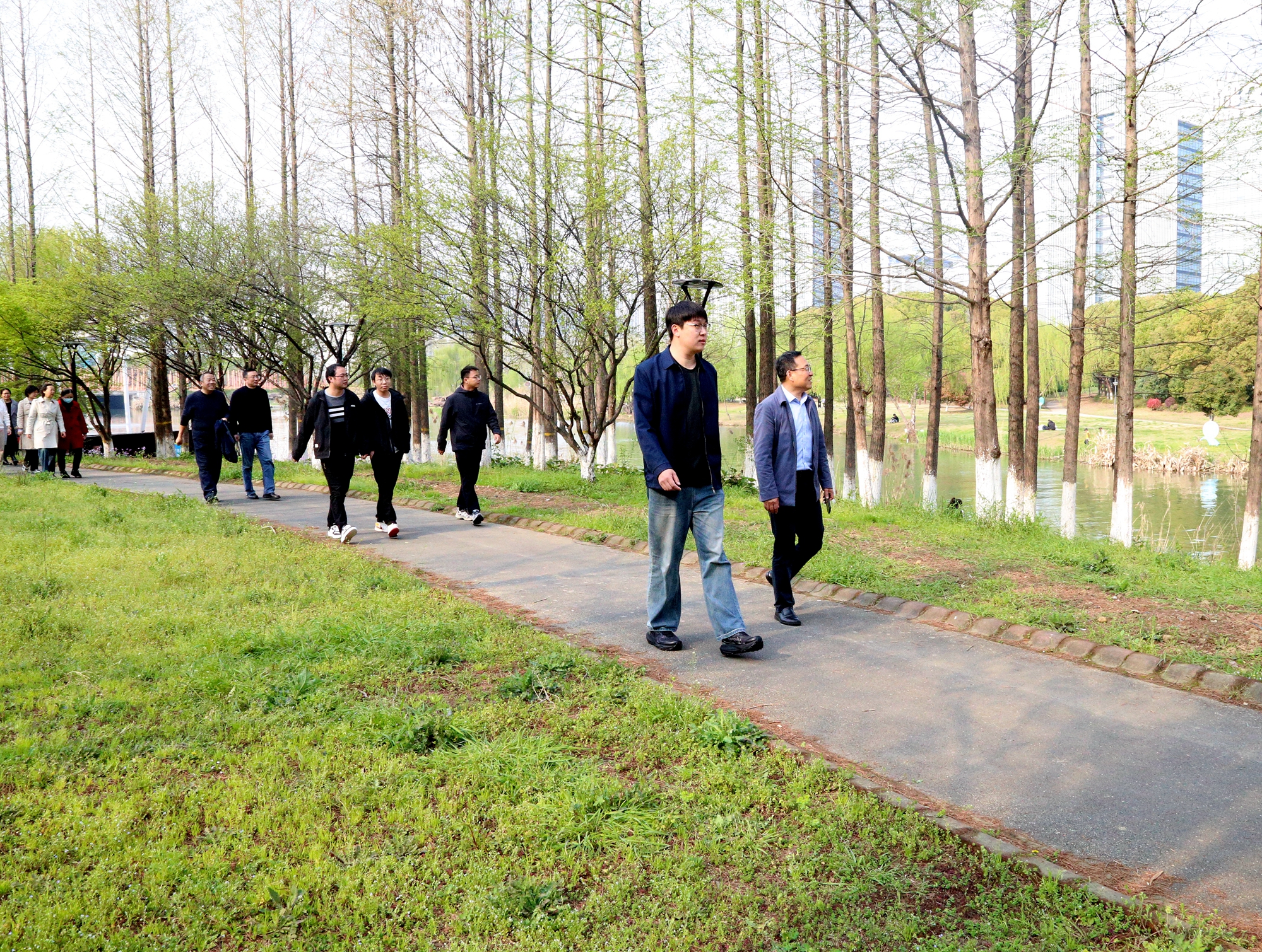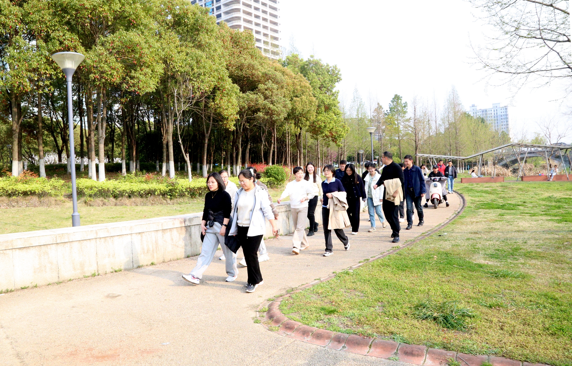 本次活动路线特别选在了学校附近的风景带,沿途绿意盎然,空气清新。行进过程中,大家三三两两,或驻足欣赏春日美景,或交流工作生活心得,一路欢声笑语不断,在轻松愉悦的氛围中放松了身心,舒缓了压力。
