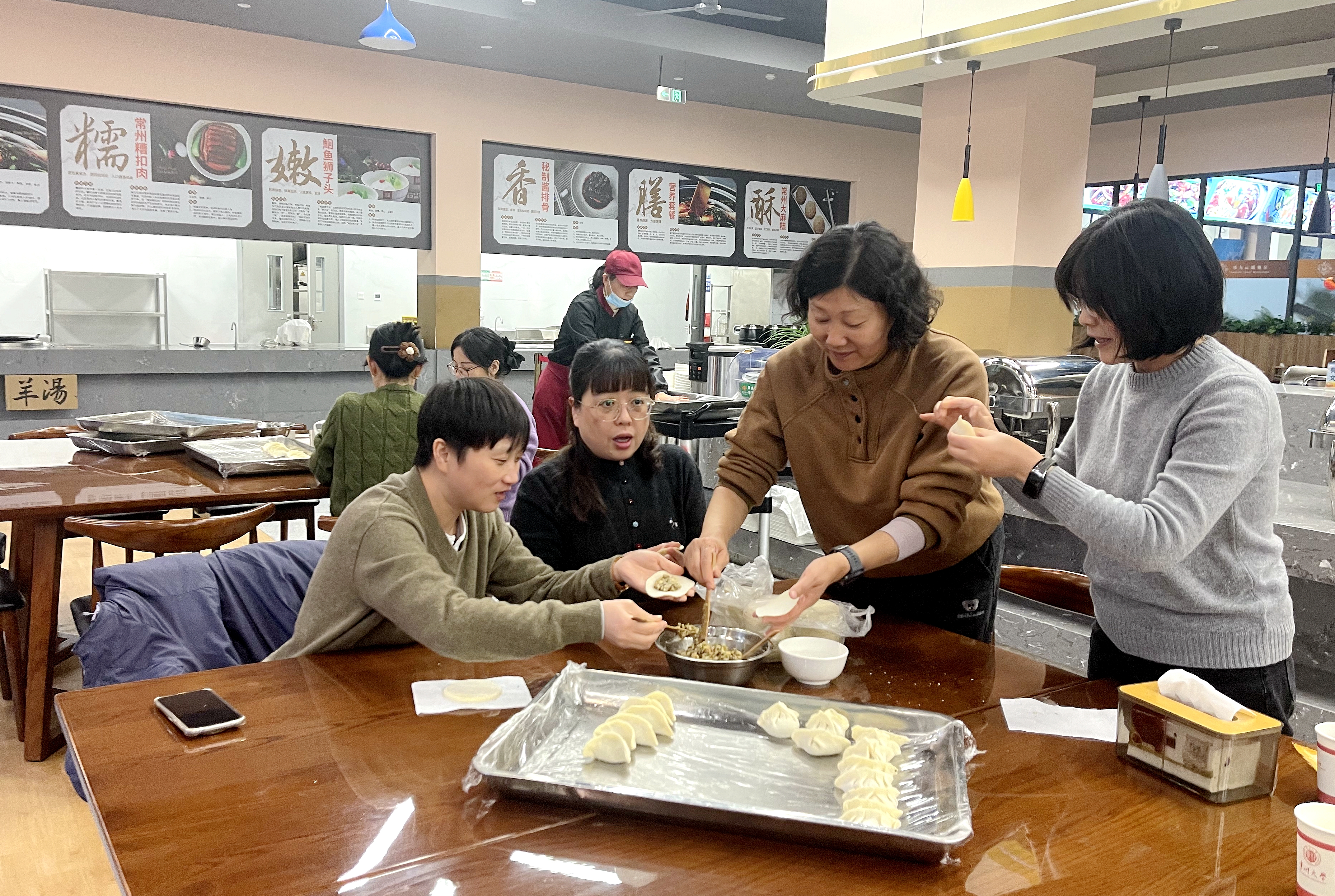 活动现场年味十足、笑语盈盈。老师们兴致勃勃地参与到写春联、打牌、包饺子等丰富多彩的活动中。一幅幅墨香四溢的春联寄托美好祝愿,一个个亲手包制的饺子包裹温馨情谊。大家一边品尝着清甜的橘子与香脆的瓜子,一边畅叙情谊,现场充满欢声笑语。